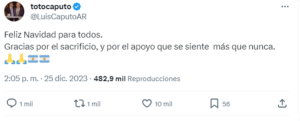 Todas estas consecuencias provienen de la filosofía política de Javier Milei: anarquismo capitalista liberal. Pero también surge, a no dudarlo, de poderosos empresarios y políticos a quienes les importa nada la teoría y mucho los intereses en juego. Desde Elsztain a Macri, desde corporaciones trasnacionales hasta Elon Musk, muchas piezas se han articulado para procurar la primarización de la economía nacional. Con cinismo, Caputo comentó hace unos días: “Feliz Navidad, gracias por el sacrificio”. Esto confirma que nos están sacrificando.